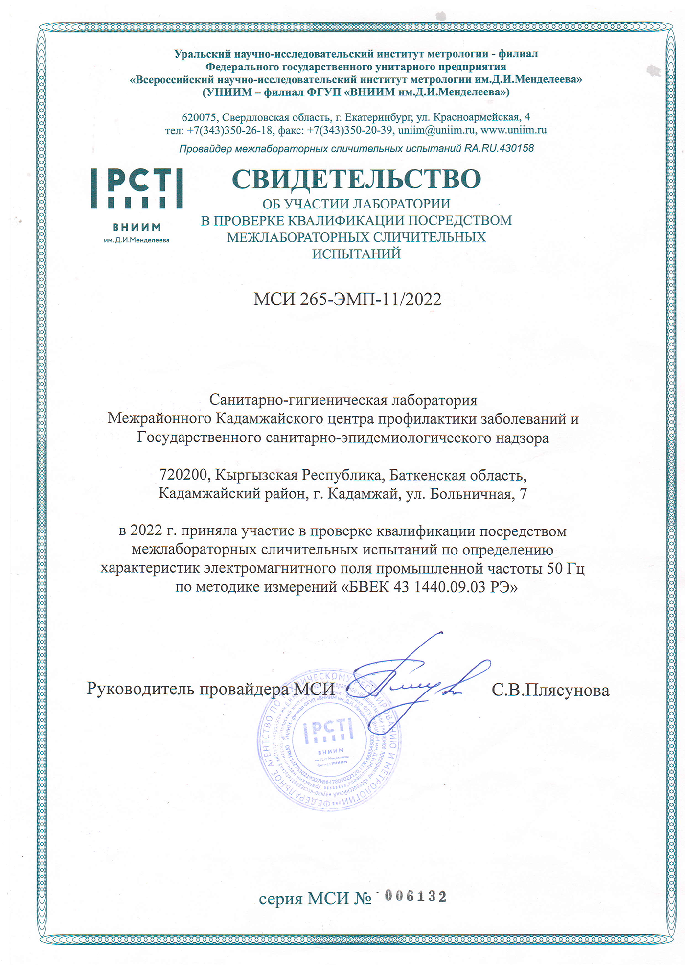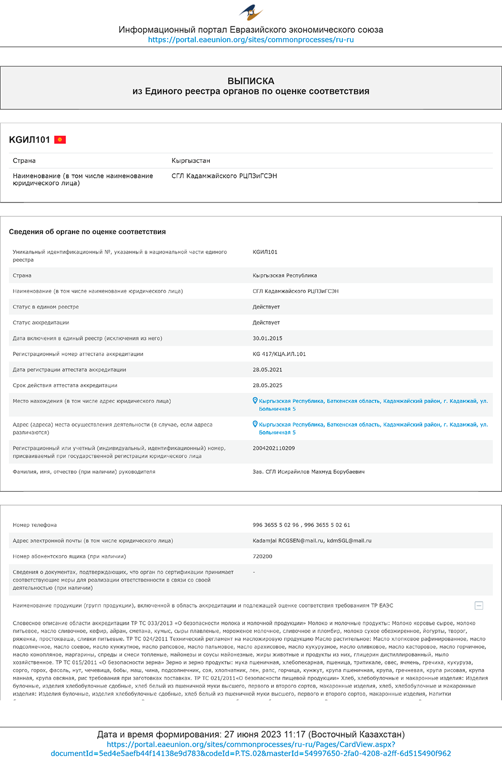 ISO/IEC 17025 № KG 417/КЦА.ИЛ.101 от: 28.05.2021 г
